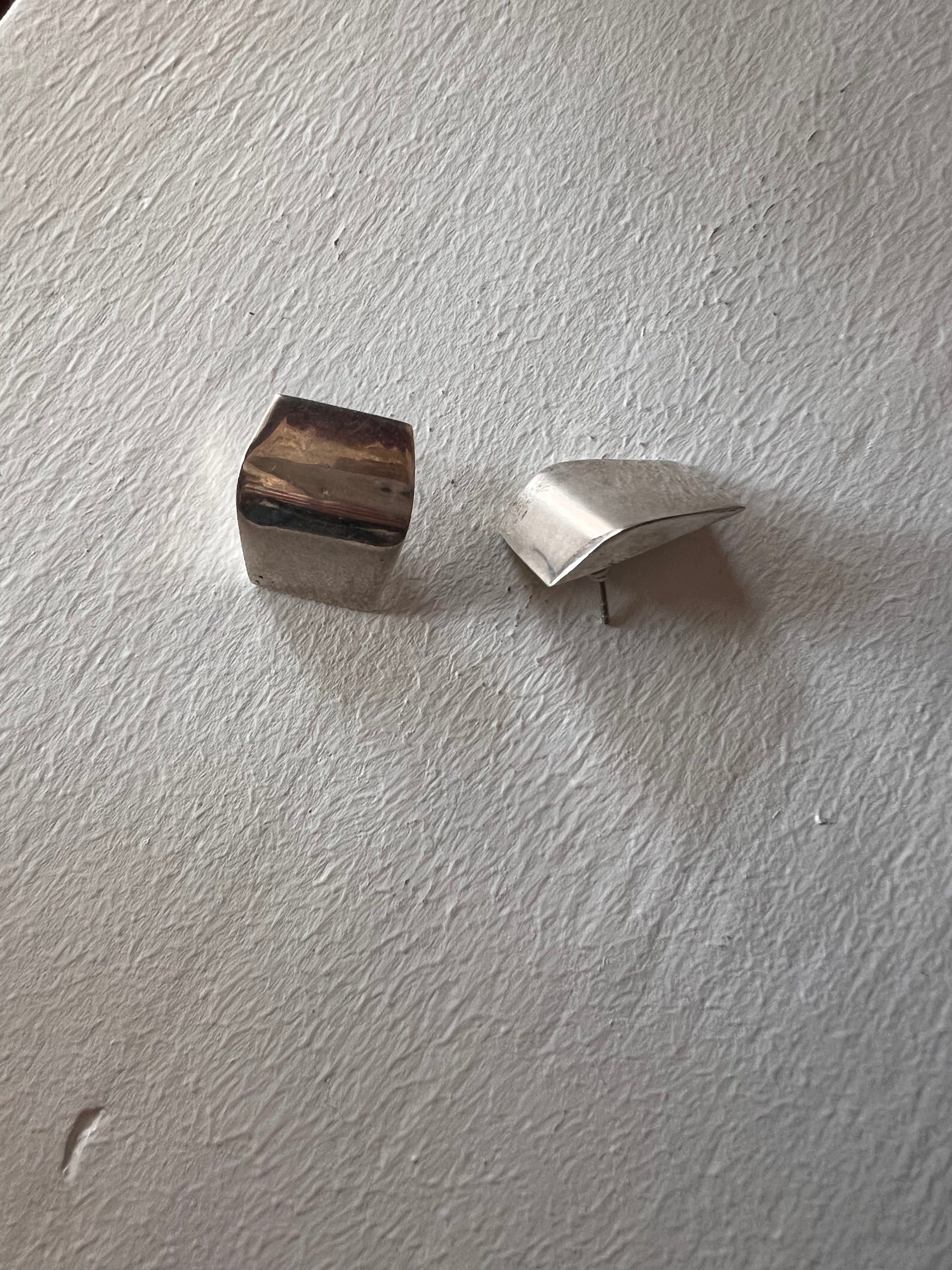 Geometric Silhouette Silver-tone finish stud earrings with a softly curved folded medal design . Sculptural look that reflects light beautifully making these earrings an effortless everyday pick .